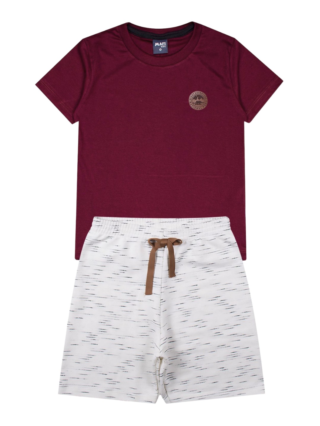 A camiseta, feita em meia malha macia, traz uma modelagem tradicional e um aplique na parte superior, dando um charme extra e um visual moderno. Já a bermuda, confeccionada em moletinho listrado, é superconfortável, com cordão decorativo na parte frontal e elástico interno no cós, garantindo liberdade de movimento e conforto o dia todo.